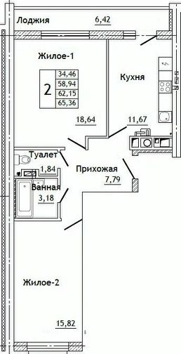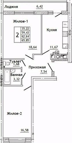 44 м2