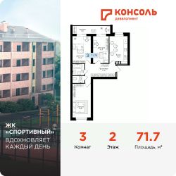 Продается трехкомнатная квартира 28 с черновой отделкой в ЖК ''Спортивный'' площадью 71.7 на 3 этаже от застройщика Консоль девелопмент.Жилой комплекс ''Спортивный'' в Смоленской области, г. Дорогобуж - многоквартирный 5-ти этажный жилой дом.