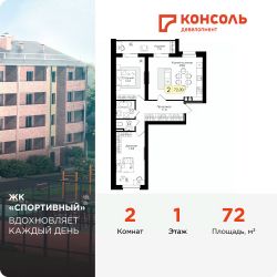 Продается двухкомнатная квартира 52 с черновой отделкой в ЖК ''Спортивный'' площадью 72 на 1 этаже от застройщика Консоль девелопмент.Жилой комплекс ''Спортивный'' в Смоленской области, г. Дорогобуж - многоквартирный 5-ти этажный жилой дом.