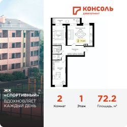Продается двухкомнатная квартира 52 с черновой отделкой в ЖК ''Спортивный'' площадью 72 на 1 этаже от застройщика Консоль девелопмент.Жилой комплекс ''Спортивный'' в Смоленской области, г. Дорогобуж - многоквартирный 5-ти этажный жилой дом.