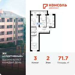 Продается трехкомнатная квартира 12 с черновой отделкой в ЖК ''Спортивный'' площадью 71.7 на 3 этаже от застройщика Консоль девелопмент.Жилой комплекс ''Спортивный'' в Смоленской области, г. Дорогобуж - многоквартирный 5-ти этажный жилой дом.