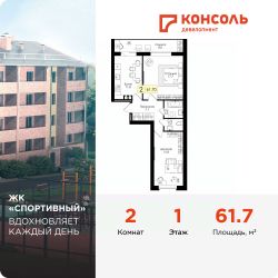 Продается двухкомнатная квартира 49 с черновой отделкой в ЖК ''Спортивный'' площадью 61.7 на 1 этаже от застройщика Консоль девелопмент.Жилой комплекс ''Спортивный'' в Смоленской области, г. Дорогобуж - многоквартирный 5-ти этажный жилой дом.