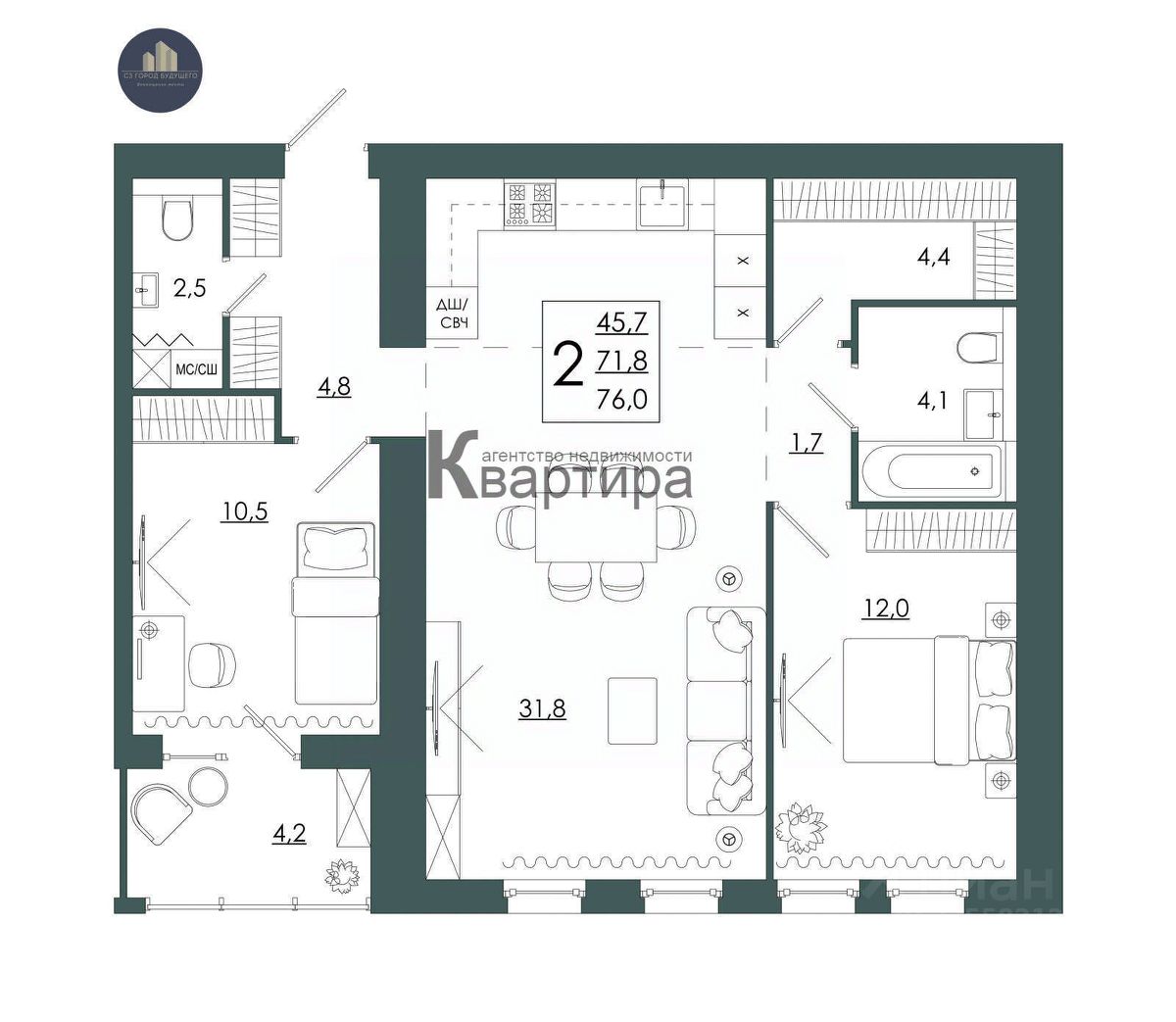 76 м² · Этаж 2 из 16