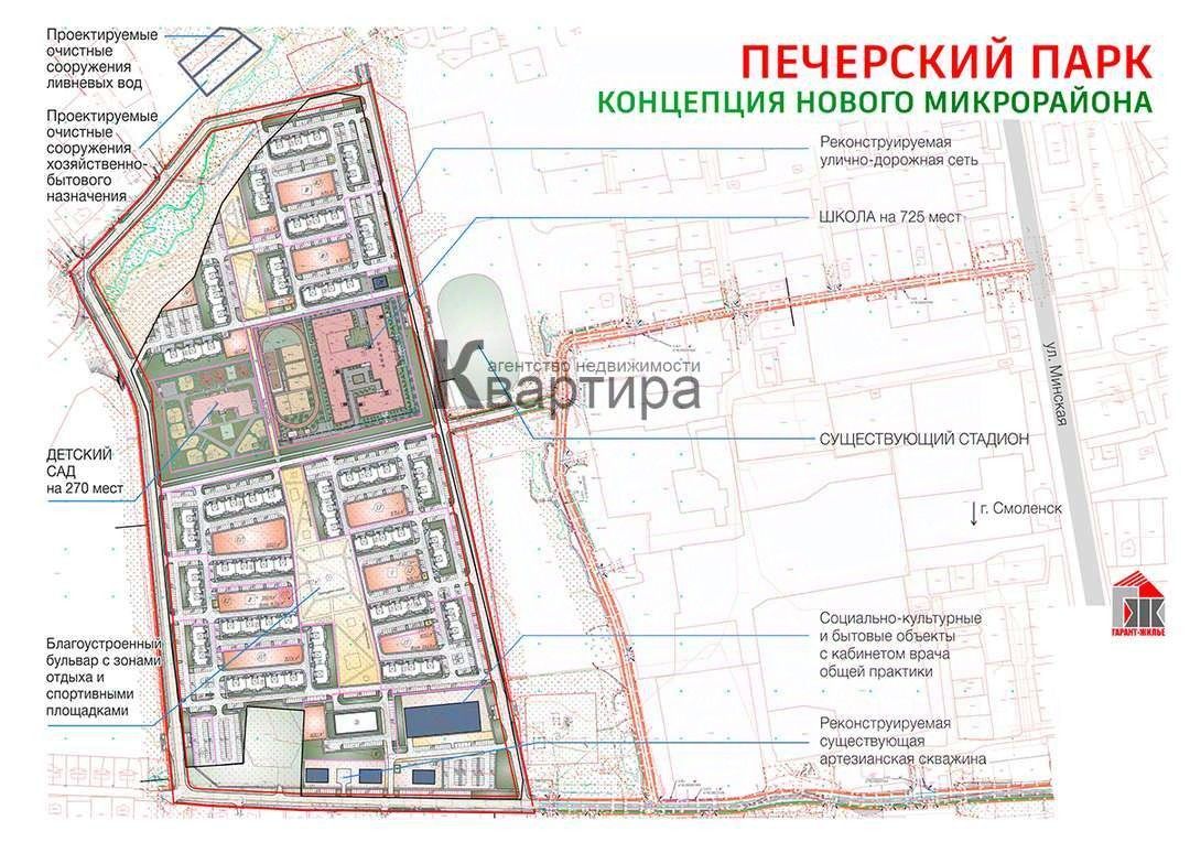 Все виды льгот, получите консультацию и гладкое сопровождение, обратившись к нам! ЖК ''Печерский Парк'' это новый микрорайон расположенный в пяти минутах езды от города Смоленска. Новый Жилой комплекс предполагает создание уникальной инфраструктуры, для комфортного проживания. Строительство новых социальных объектов при поддержке государства обеспечит будущих жителей микрорайона гарантированными местами в новую школу и детский сад, в шаговой доступности от проживания. Печерск является развивающимся и перспективным населенным пунктом. На территории расположены: физкультурно - оздоровительный комплекс Печерский с современным футбольным полем, печерская средняя общеобразовательная школа, доставка учеников в школу и обратно осуществляется несколько раз в день на желтых школьных автобусах. Детский сад ''Золотая рыбка'', отделение Почты России, МФЦ, поликлиника. Реализацию проекта постройки жилого квартала компания начала летом 2023 года. Одновременно со строительством жилья будет развиваться и придомовая территория: планируется строительство новой школы и детского сада, сквера с велосипедными дорожками, зонами отдыха и проведения досуговых мероприятий для всех возрастных групп, остановок общественного транспорта, торговых комплексов, и объектов социально-бытового назначения. В микрорайоне уже ведется строительство техношколы ''Феникс''. Новая школа на 726 мест будет построена к концу 2026 года. В ней будут созданы условия для получения современного качественного образования, а также для занятий робототехникой, анализом данных и машинным обучением, освоения технологий 3D-печати и других индустрий будущего. Подъездные дороги, просторные парковки и тротуары, с удобным съездом для колясок. Большое внимание уделяется озеленению. Целью создания района является организация ''среды'' для комфортной и благоустроенной жизни населения. Сформированные рекреационные зоны, отделенные от жилых территорий, создадут атмосферу с эко-оттенком, с доступной социальной средой. Концепция архитектуры района отвечает современным потребностям населения и создаёт определенный стиль жизни в условиях безопасности и надежности. Новый микрорайон объединит тех, кто хочет жить на природе и при этом пользоваться всеми благами современной цивилизации в продуманном суверенном пространстве. Индивидуальное отопление, Простор, Вместительные комнаты и Большая кухня создают идеальный комфорт квартирного проживания на природе. Предусмотрены разные условия оплаты. Квартиру можно забронировать без аванса и предоплат, а также записаться на просмотр!