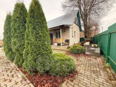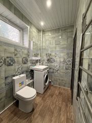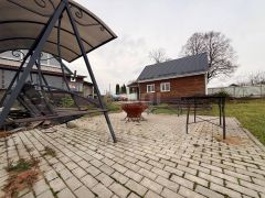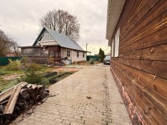 Дом из бревен, обложен кирпичом. Новые пластиковые окна, новый газовый котел и новый электрический водонагреватель. В доме есть туалет и душ. На территории дома баня, огород, подвал. Дом не требует ремонта. Участок ухоженный.