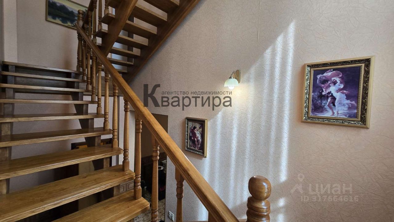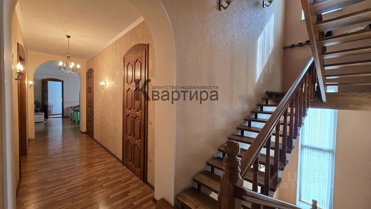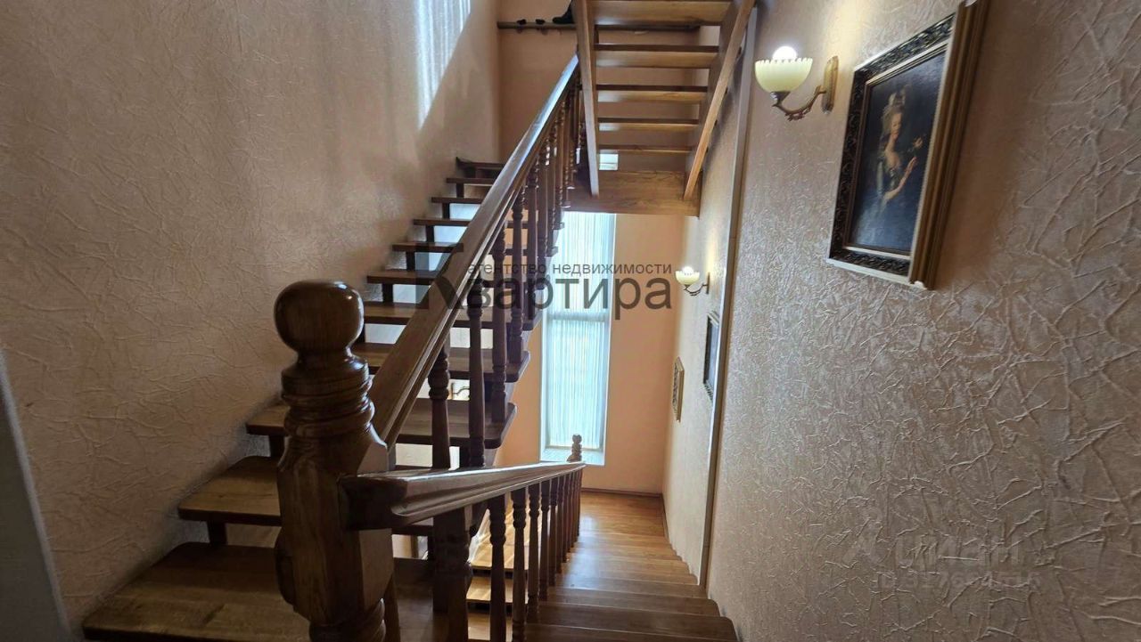 На первом этаже большая прихожая 30м/кв, спальная комната 25 м/кв, кухня 25м/кв, огромная гостинная 70 м/кв. с лоджией 8м/кв., с/узел. На 2ом этаже два санузла и 5 больших спален, так же есть теплая лоджия оборудованая под кабинет. Между этажами устроена удобная дубовый лестница, которая ведёт на террасу расположенную на крыше дома.
