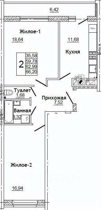продам 2-к, Юбилейная, 196 233 000 ₽