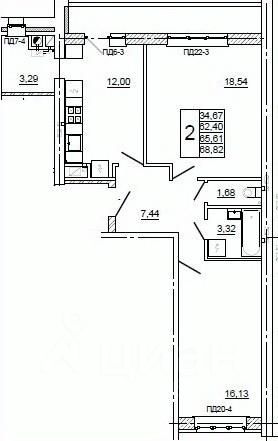 Общая площадь68,8 м2