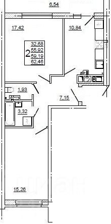 Общая площадь62,7 м2