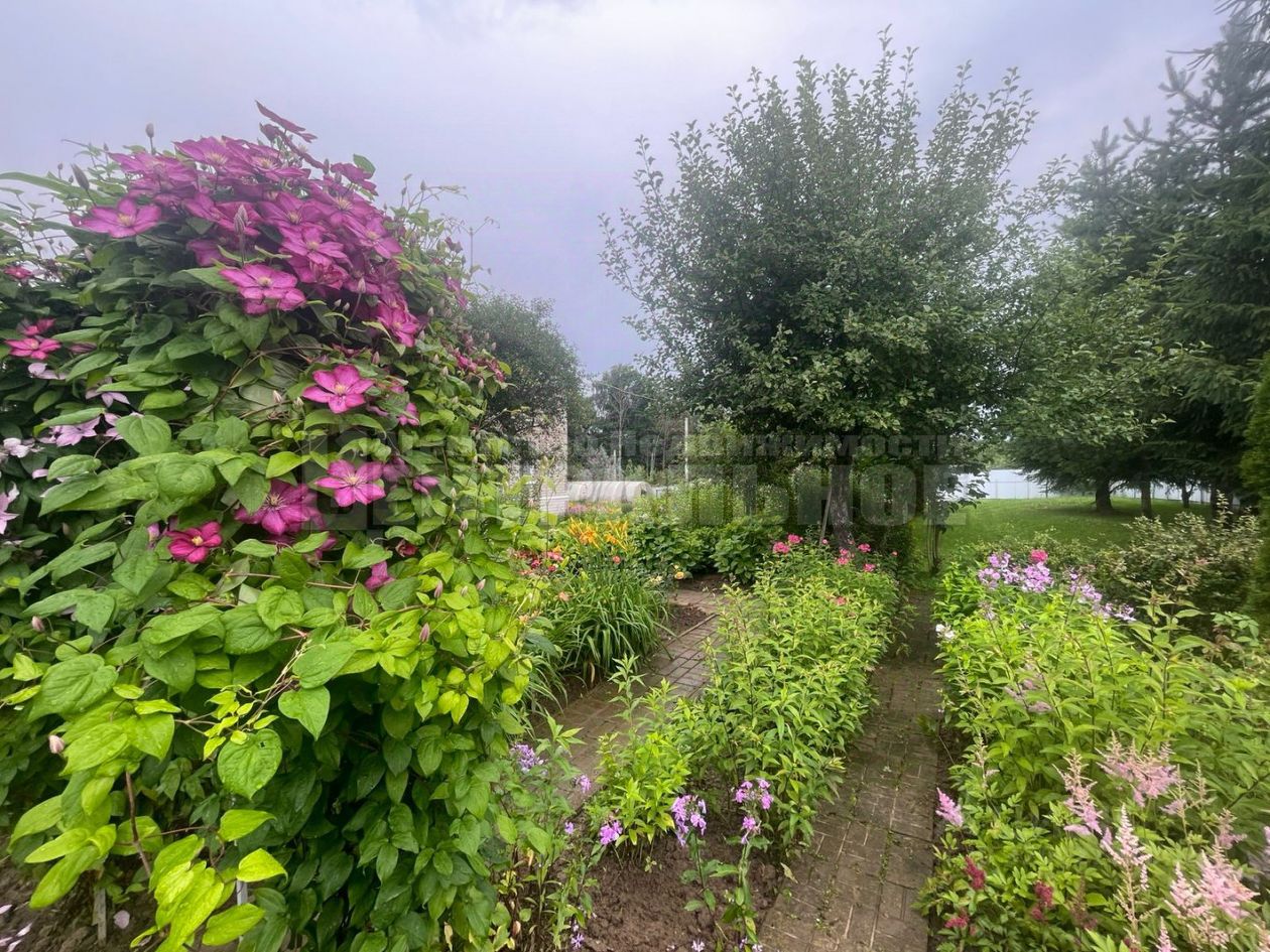 Участок большой, 18 сот., квадратной формы, ухоженный. Много различных цветочных и хвойных насаждений. Также имеются фруктовые деревья, ягодные кустарники, теплицы для овощей. Есть зоны с газоном и место для земледелия. Участок находится в тихом, спокойном месте. Граничит только с одной стороны с соседским участком.