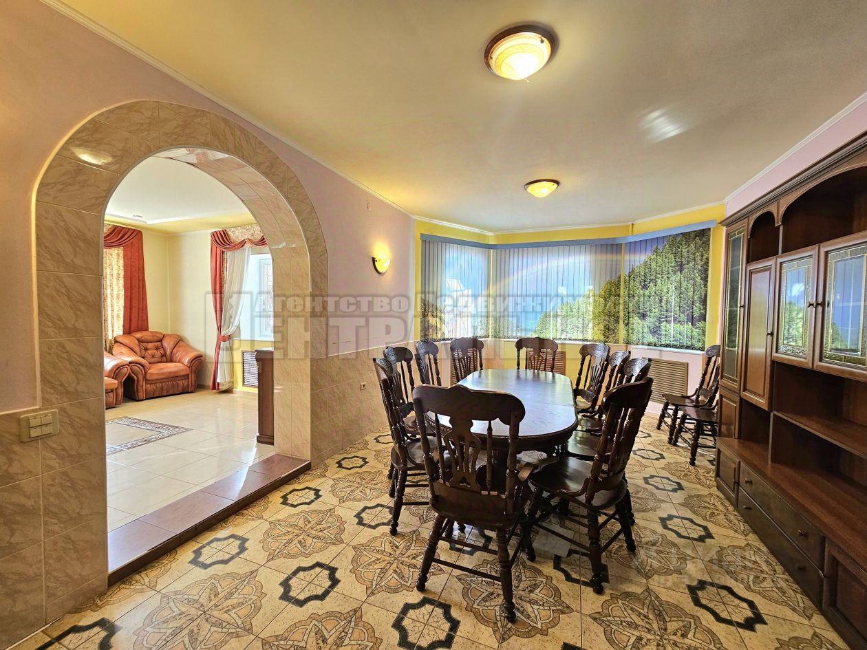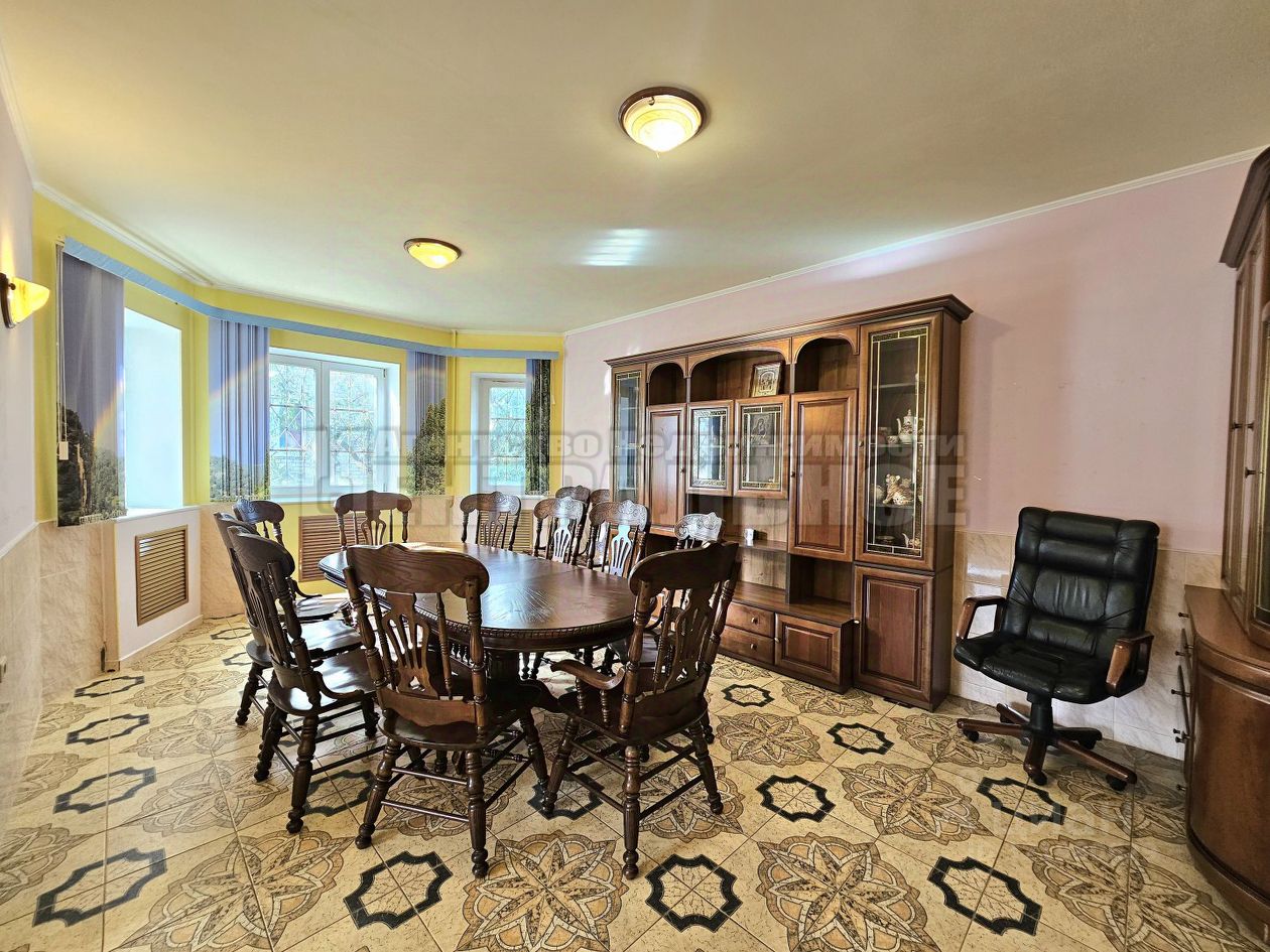 В 5 мин от центра города в пос.Одинцово продается 2-х этажный просторный жилой дом общей площадью порядка 400 кв.м кв.м., расположенный на земельном участке 10 соток, расположенный для ИЖС. Дом построен исключительно из силикатного белого кирпича, фундамент на ж/б блоки, перекрытия также ж/б. 1-й этаж: терраса 18.6 кв.м коридор 10+5.5 кв.м гостиная 20 кв.м столовая 24 кв.м кухня 12.6 кв.м санузел 3 кв.м 2-ой этаж: гостиная 45 кв.м спальня 13.8+18+20 кв.м ванная комната с санузлом 13.3 кв.м Цоколь: комната отдыха 10.5 кв.м душ 4.4 кв.м сауна 5.2 кв.м веранда 8.4 кв.м спортивный зал 31+16 кв.м подсобка 12.6 кв.м бойлерная 12 кв.