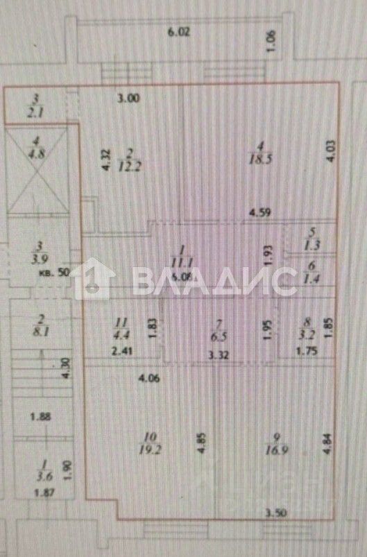 Эта просторная квартира общей площадью 96,8 кв. м (+ лоджия 6 кв. м) расположена на первом высоком этаже десятиэтажного кирпичного дома . Жилая площадь составляет 54,6 кв. м, а кухня — 12,2 кв. м. Уникальная планировка, в этом доме только одна такая квартира (совмещение 1кк и 2кк)