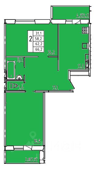 Общая площадь62,2 м2