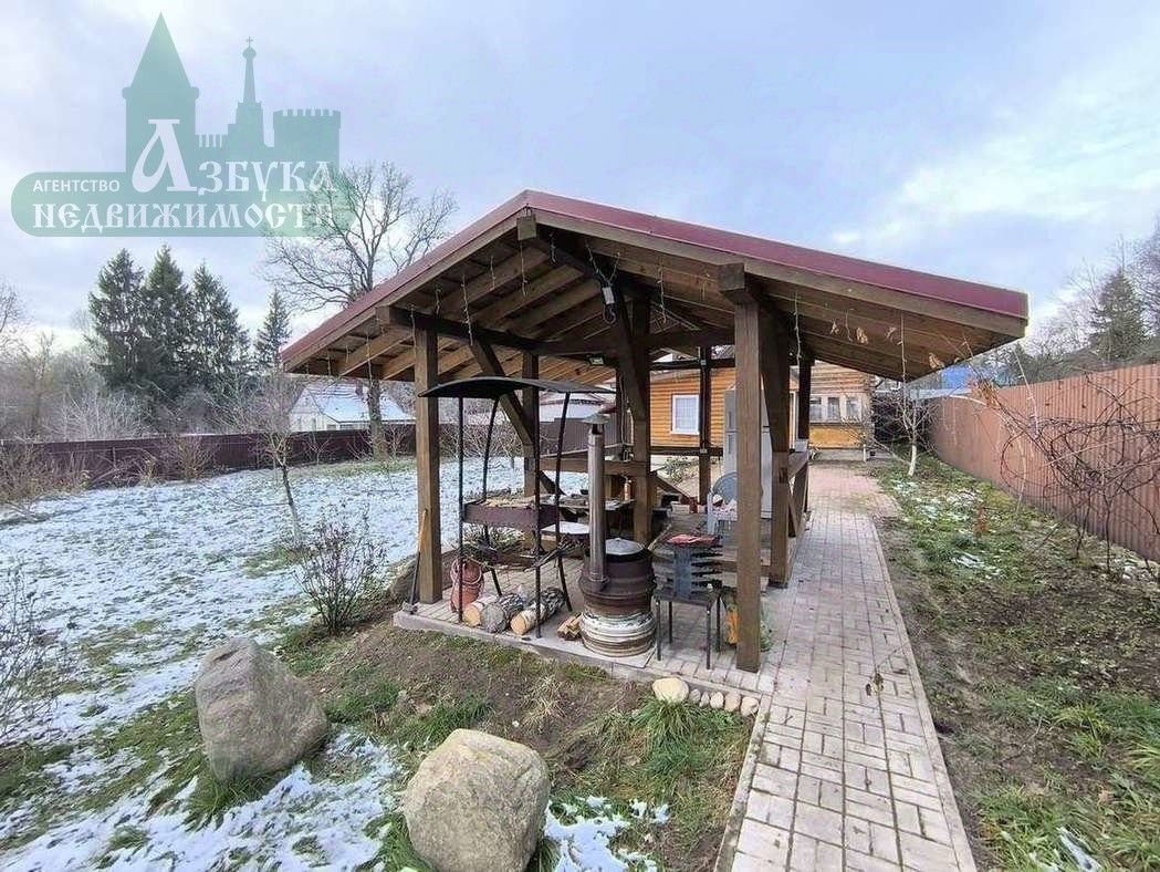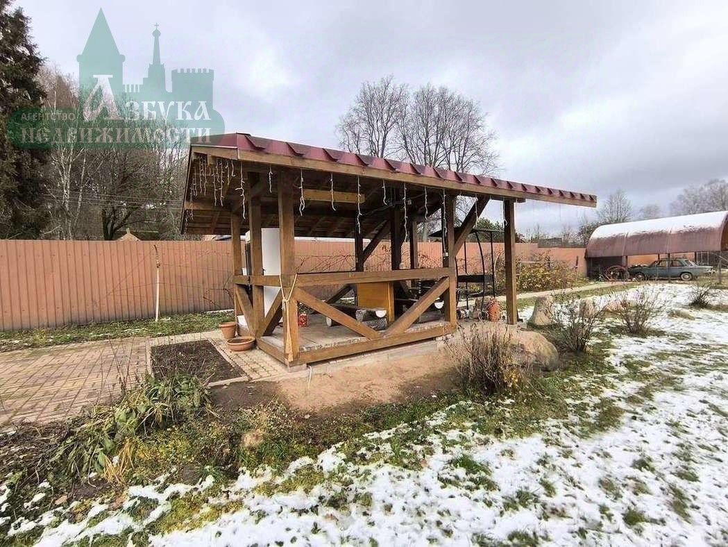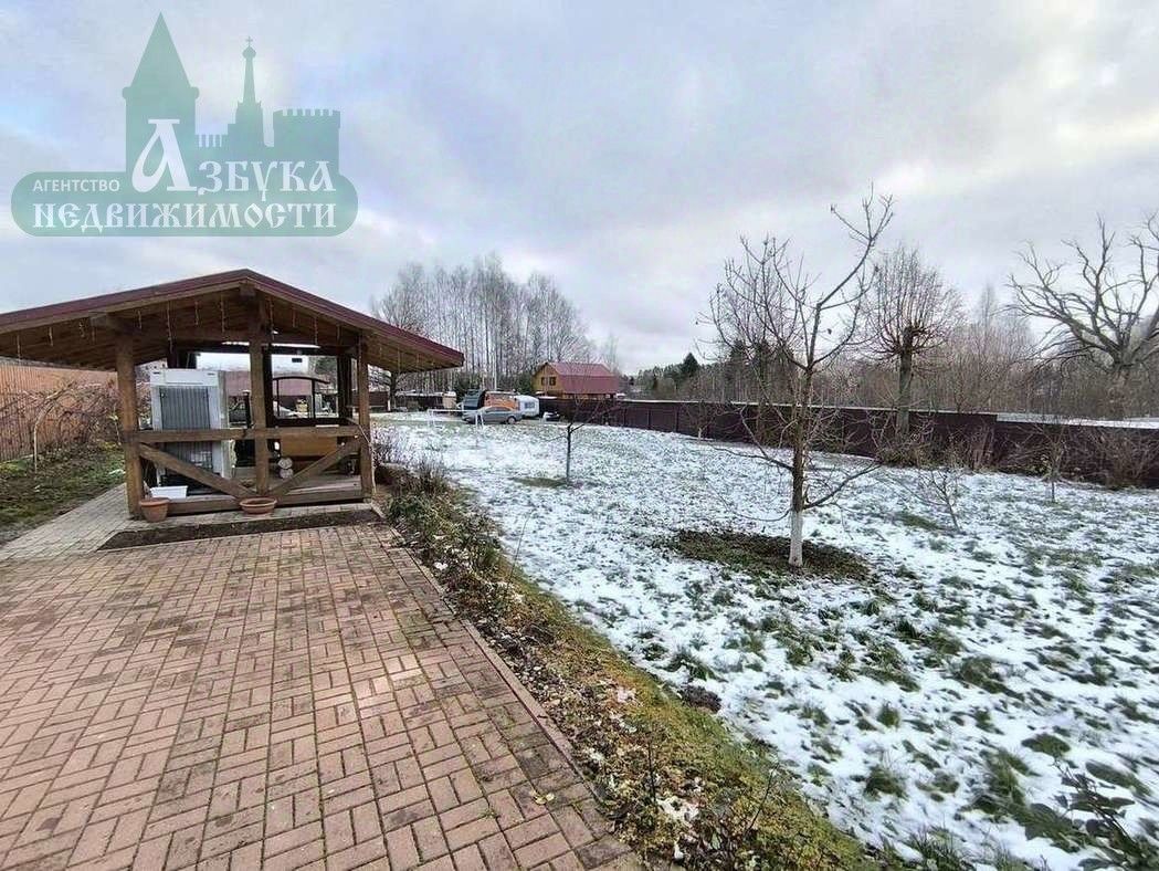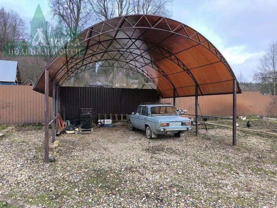 Очень просторный земельный участок. На участке: беседка, большой навес для автомобилей, хозяйственные постройки, а также множество плодовых деревьев.