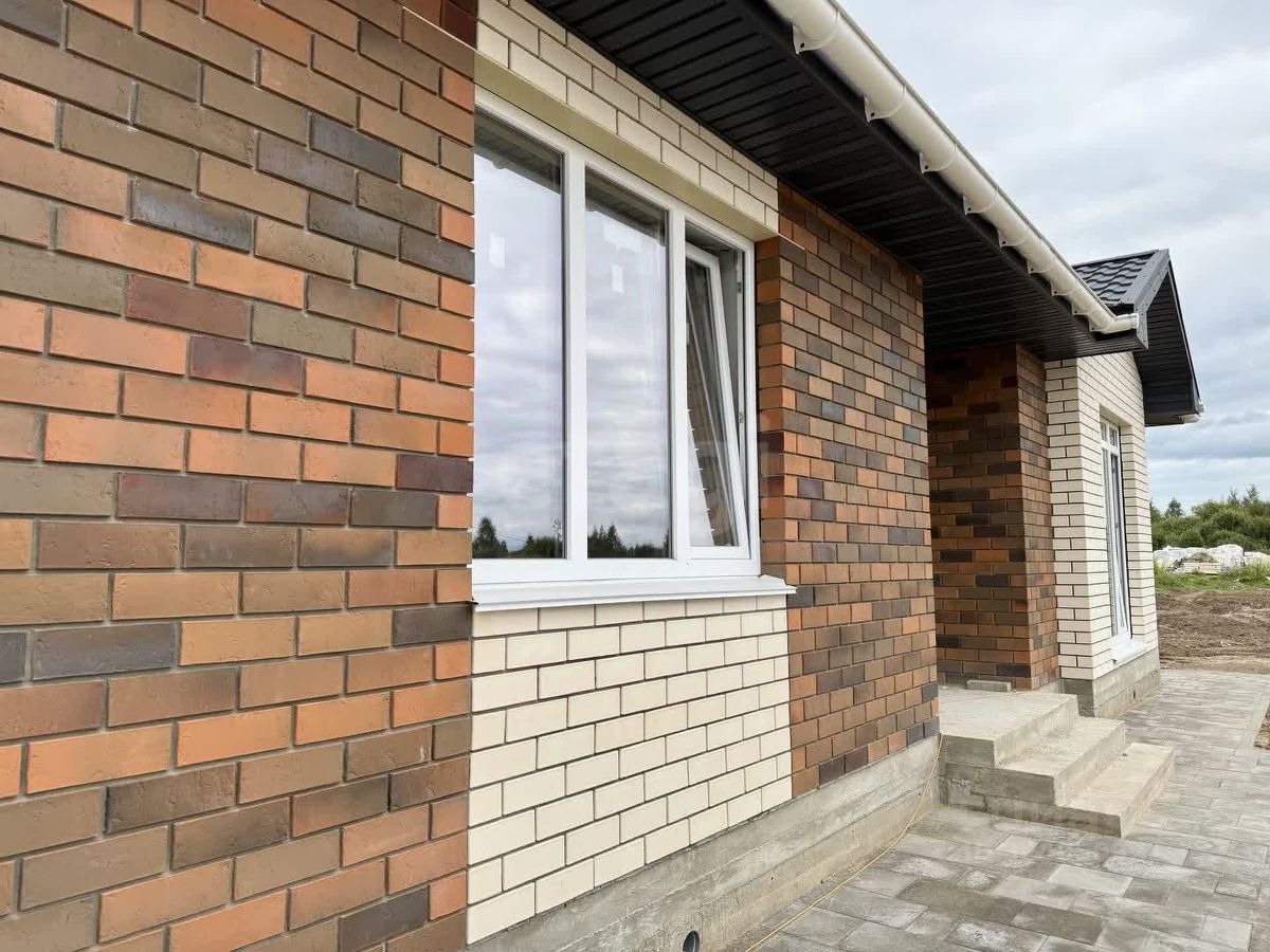 - Фундамент ленточный железобетонный - Автоклавированный газосиликатный блок толщиной 400 мм - Облицовка: керамический кирпич ''Баварская кладка'' или штукатурный фасад белого цвета с вставками декоративного камня ''под баварскую кладку'' - Оконные блоки премиум-класса с заполнением двухкамерным стеклопакетом (3 стекла).