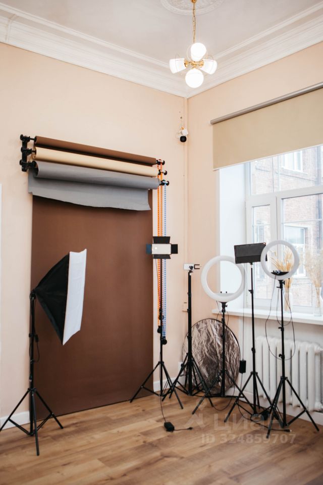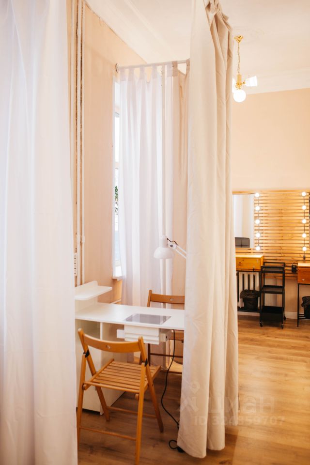 Студия состоит из двух комнат: большая (52.8кв.м) с гримерными столами, фотозоной и клиентской зоной, маленькая (13,5кв.м) - зона кушеток Большие окна, помещение очень светлое Сделан свежий ремонт