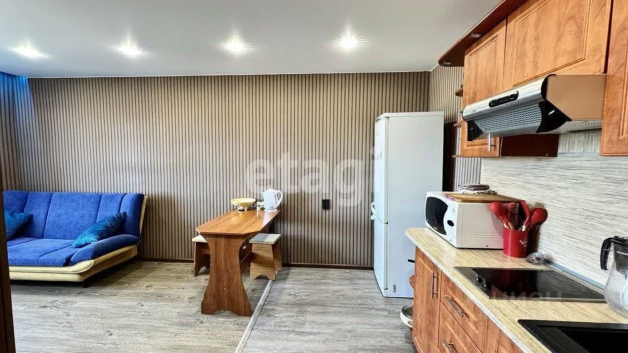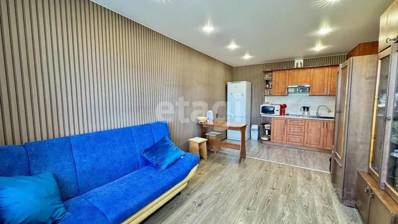 Выполнен современный ремонт. Квартира с мебелью и техникой. Кухня совмещена с одной комнатой (кухня-гостинная) и одна спальня.