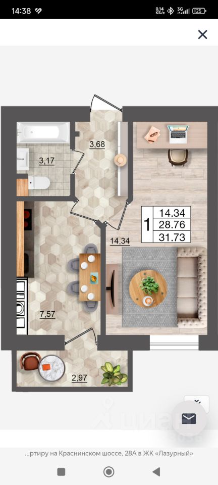 продам 1-к, Краснинское шоссе, 28а3 475 000 ₽