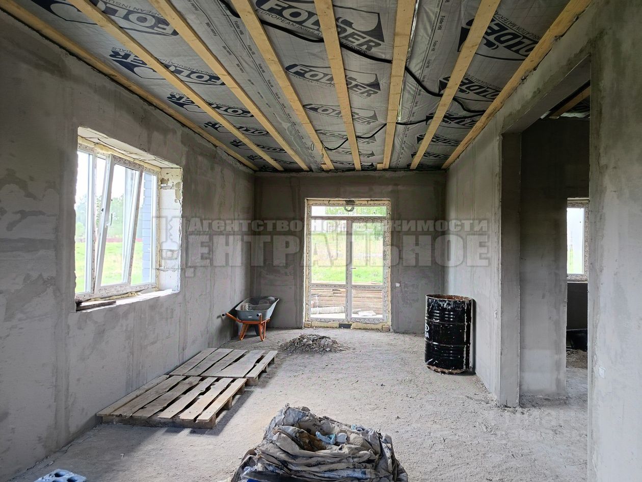 Весь дом будет оснащен теплыми полами с разводкой под радиаторы отопления и залита стяжка. Также оштукатурены стены и разведена электропроводка , установлены розетки и выключатели.