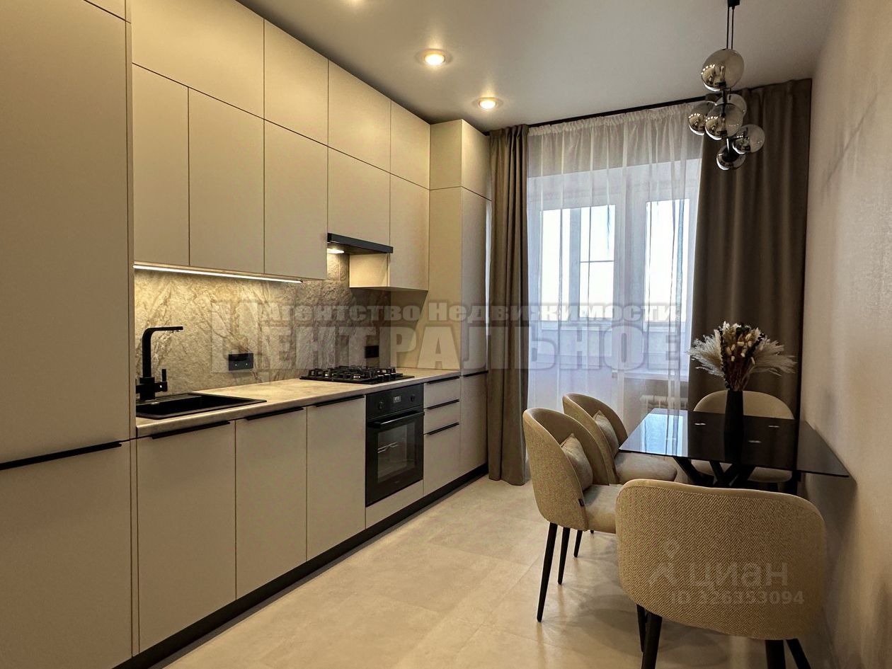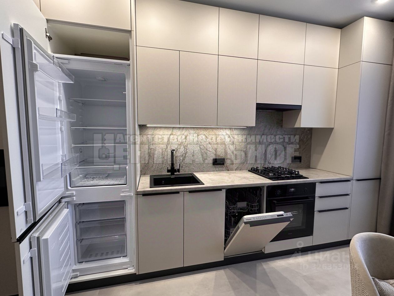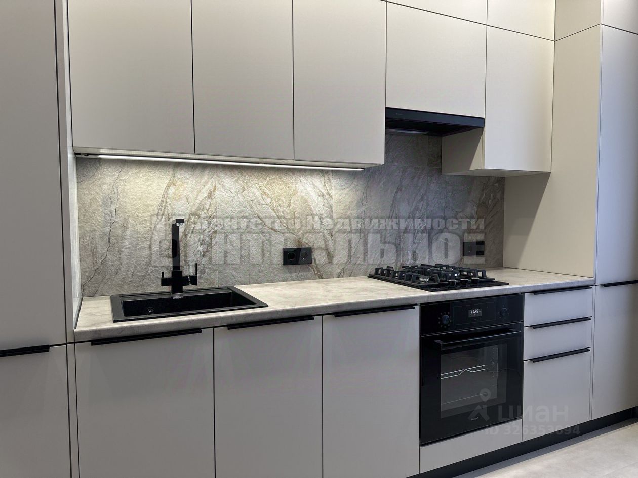 Просторная кухня: -Оснащена встроенной техникой: холодильник, духовой шкаф, посудомоечная машина, газовая варочная панель, микроволновая печь и вытяжка, газовый котел baxi, -Обеденный стол, стулья, -Вместительный встроенный кухонный гарнитур с долговечными пластиковыми фасадами, петли с доводчиками, сушка для посуды, -Зонированное освещение, сенсорная подсветка рабочей зоны, -Пол и фартук- керамогранит.