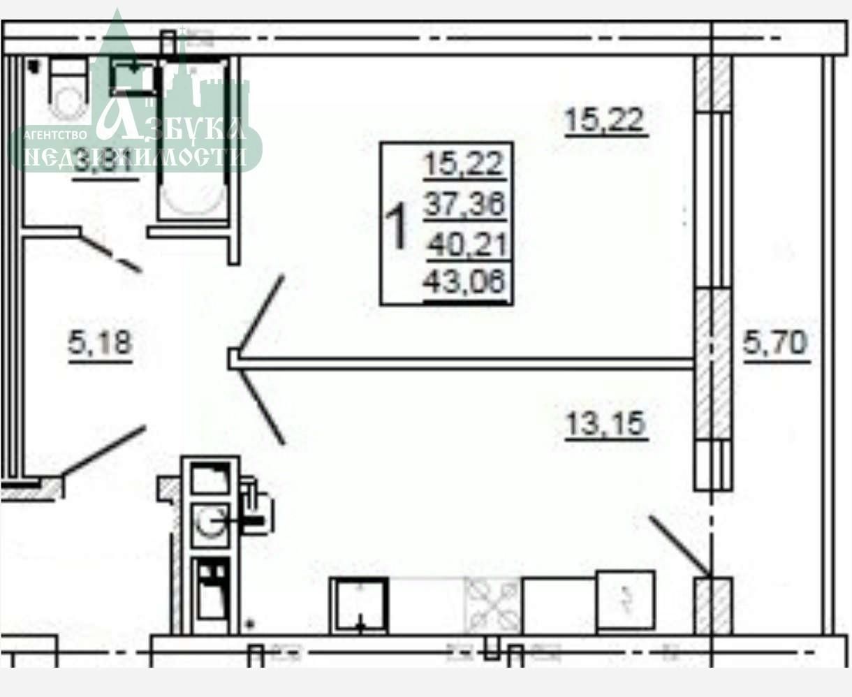 Площадь: 43,06/15,22/13,15 кв.м.