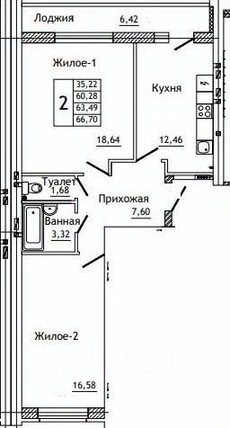 Общая площадь66,7 м2