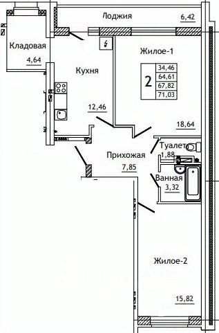 Общая площадь71,03 м2